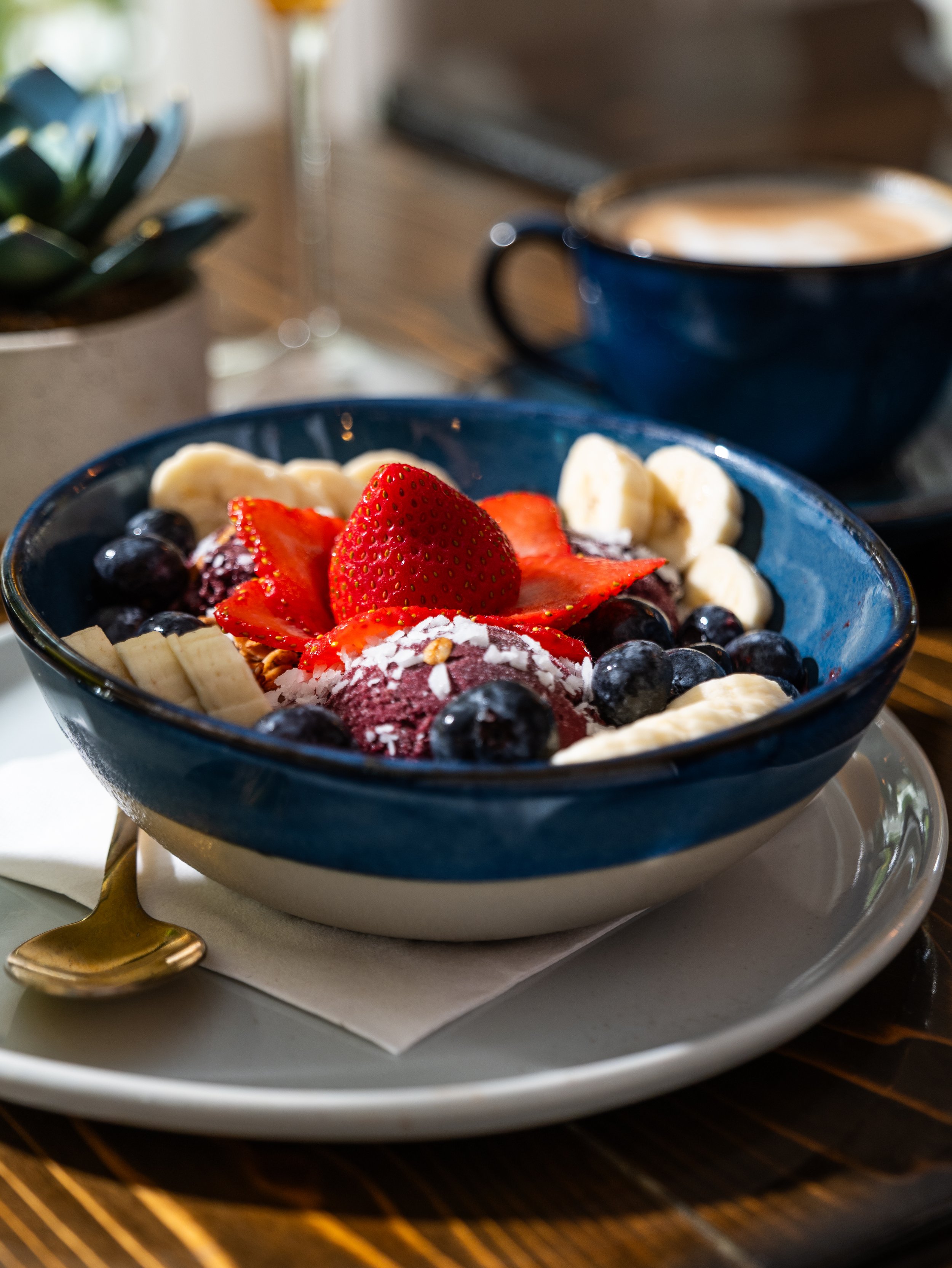 After your walk, head over to Village Cafe, conveniently located close to the shoreline. Stepping inside feels like exhaling — the ambiance is laid-back and inviting, with a blend of beachy charm and casual sophistication. Whether you choose indoor seating or the breezy patio, you’ll feel like you’ve found your spot for the day.